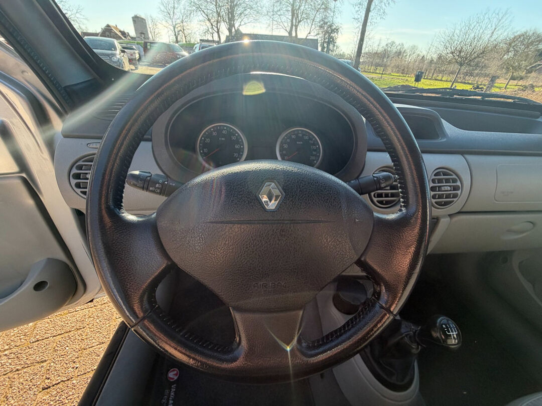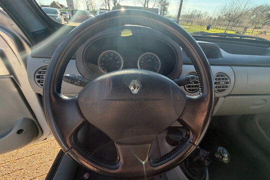 Een combinatie van vooruitstrevende techniek en elegante vorm. Dat is deze Renault. Drive for change. De aandrijving van deze Renault wordt verzorgd door een viercilinder motor en een handgeschakelde versnellingsbak. Achterportieren kunnen gemakkelijk beschadigd raken als ze bijvoorbeeld door de wind bij uitstappen openslaan. Dat zal niet gebeuren met de aanwezige schuifdeur achter.
